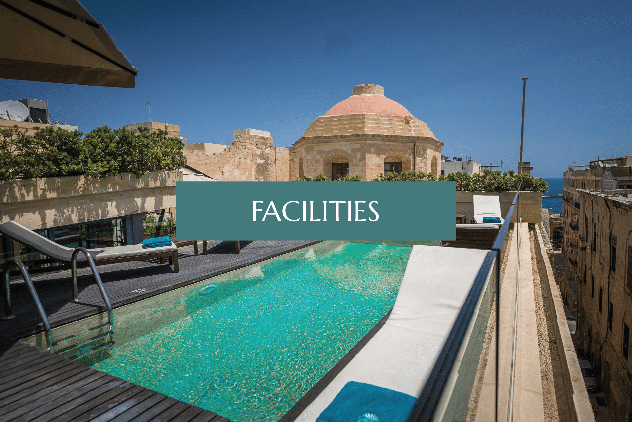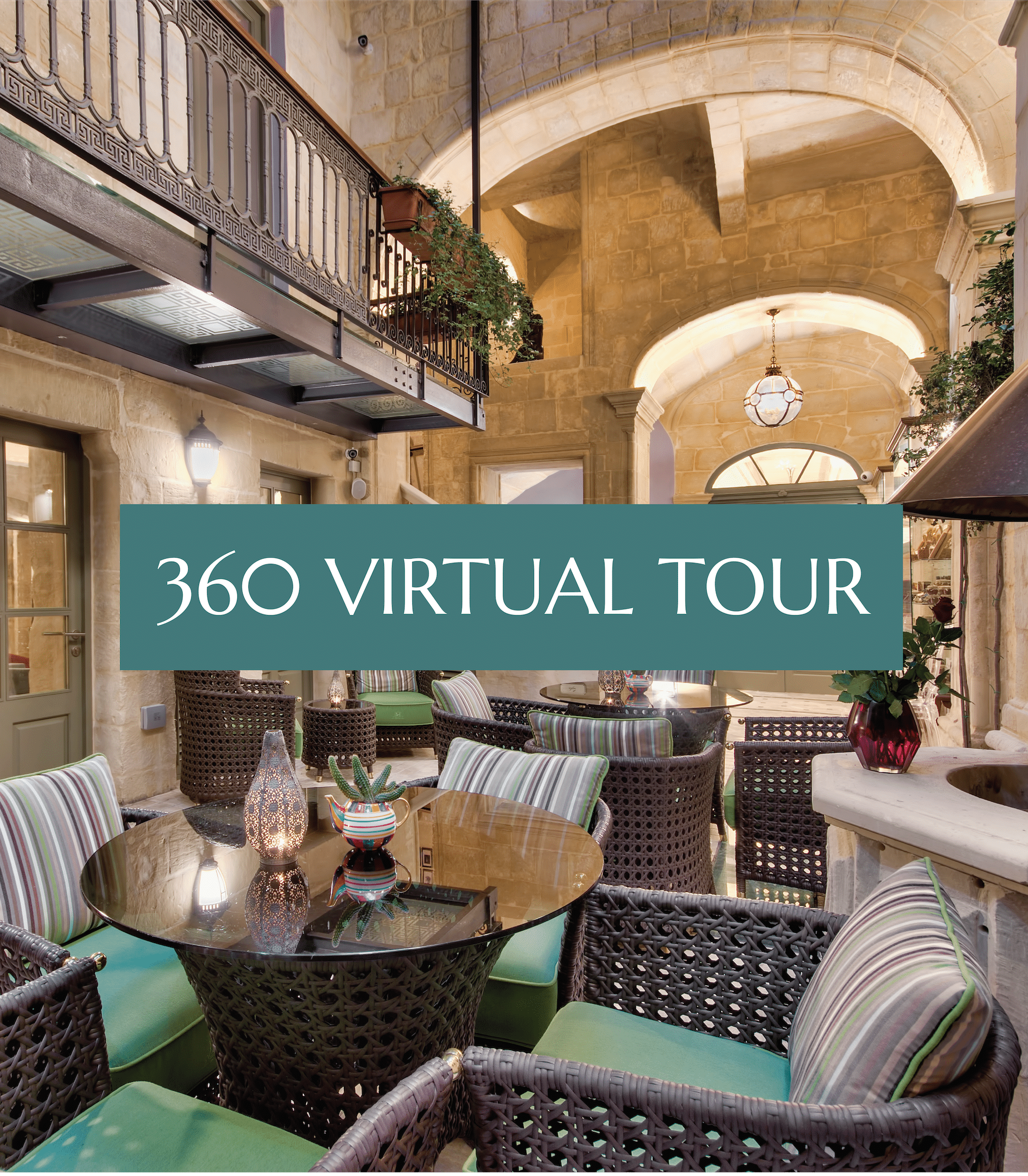 Palazzo Consiglia is a traditional Maltese townhouse converted into a modern boutique hotel situated at the heart of Valletta in St Ursula Street, just a few meters away from St Rocco’s church, surrounded by baroque buildings and key attractions such as the Lower Barrakka Gardens, Valletta Waterfront and Fort Saint Elmo. Discover 13 unique rooms, each a masterpiece, as you immerse yourself in history.